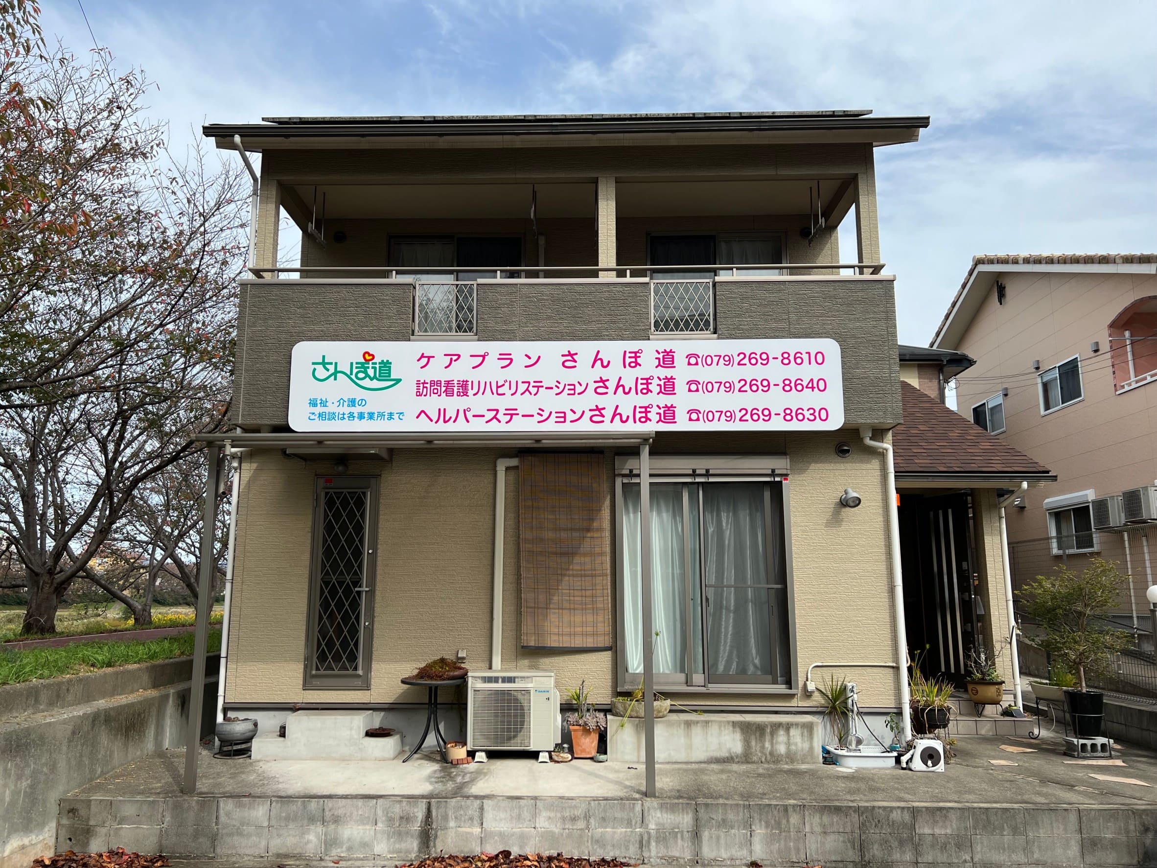 看板、と聞いたときにみなさんが一番にイメージするであろうスタンダードな看板です。建物の壁面に設置するので、その建物が何なのか?どういうものなのか?をはっきり示せるのはやはりこの看板。ハチにははちみつ、建物には壁面看板。定番ですね。